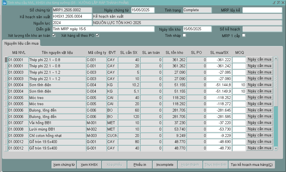 Hoạch định nhu cầu nguyên liệu (MRP)