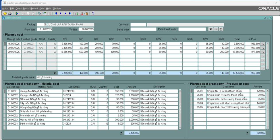 Phân tích chi tiết giá thành theo lệnh sản xuất